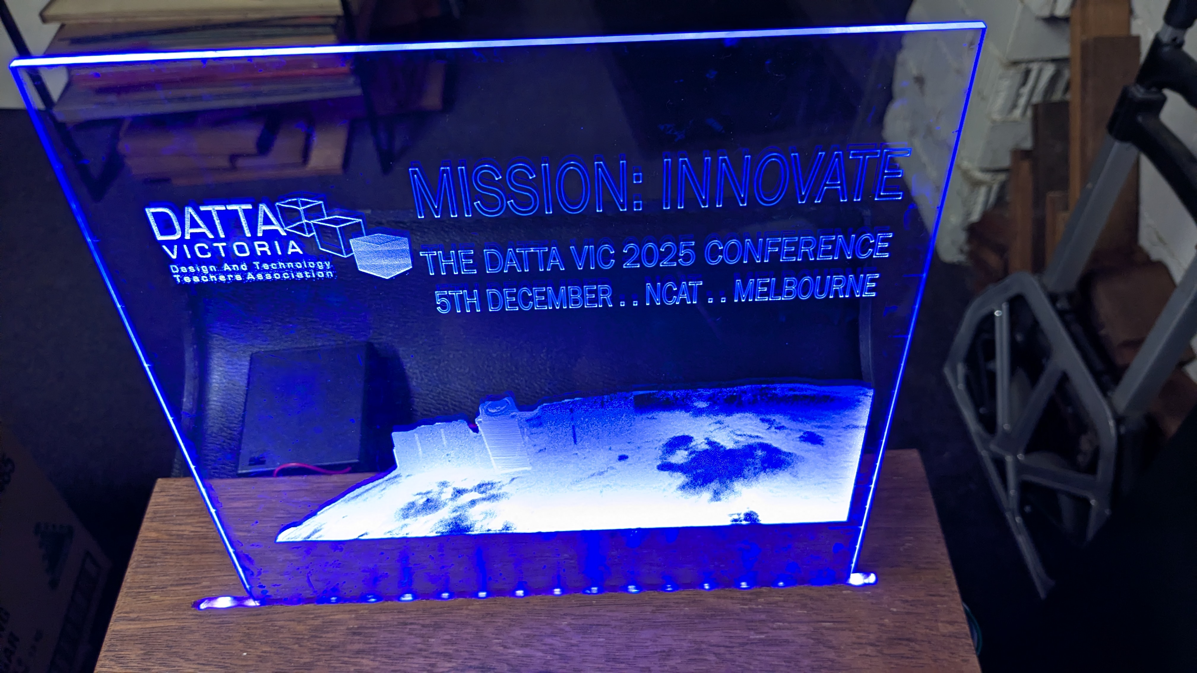 A075 - Laser Engraved Edge Lit Acrylic, Display Stand